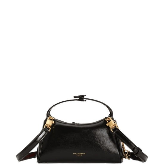 Black top handle detachable shoulder strap gold-tone hardware charm detail zip fastening vittoria leather handbag size and fit - depth 8.5 cm. height 12 cm. width 19.5 cm.