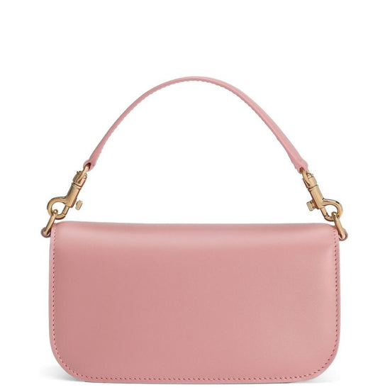 Pink foldover top with magnetic fastening single detachable top handle detachable shoulder strap internal slip pocket 3.5 leather shoulder bag size and fit - width 7,68 in / 19,5 cm height 5,12 in / 13 cm depth 1,77 in / 4,5 cm handle 5,91 in / 15 cm