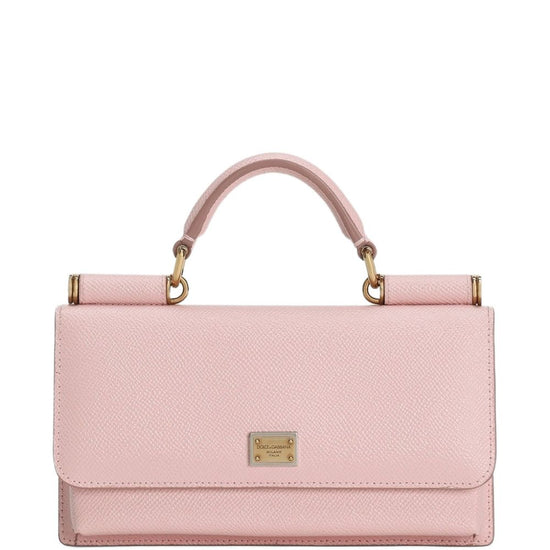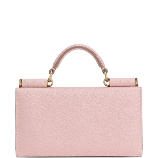 Flesh pink top handle gold-tone hardware logo plaque detachable chain-link shoulder strap leather mini bag