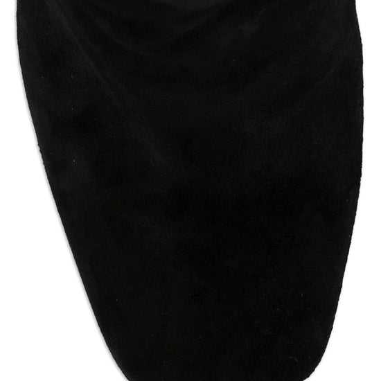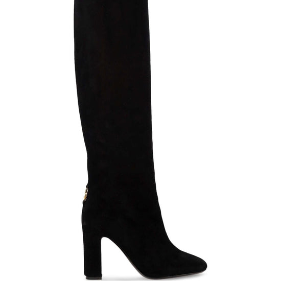Black suede leather block heel chain detail pointed toe knee-high shaft suede leather boots