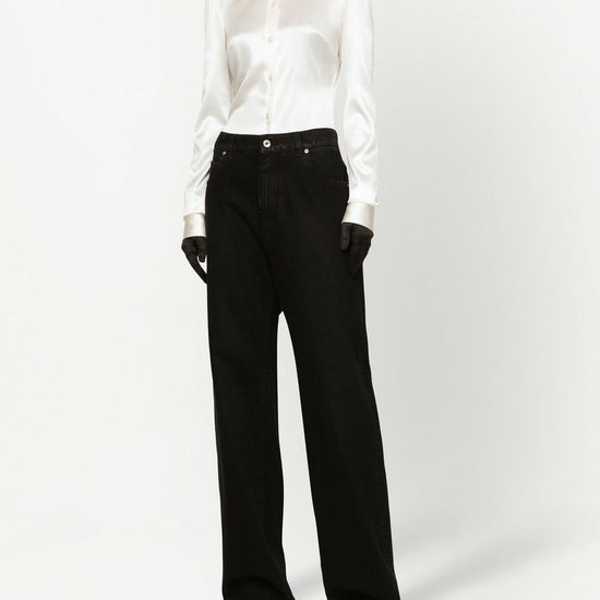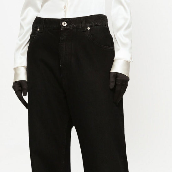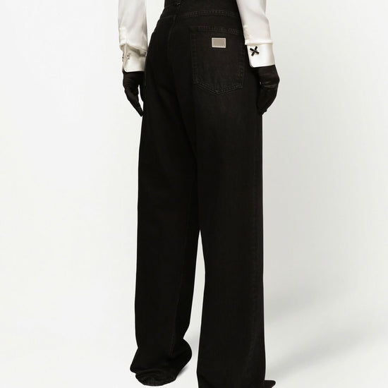 High-rise drop-crotch boyfriend jeans from dolce & gabbana featuring black, cotton, washed denim, belt loops, classic five pockets, drop crotch and wide leg. denim boyfriend jeans size and fit - this piece fits true to size. we recommend you get your regular size. model is 1,75m / 5ft 8in wearing size 40 (it)