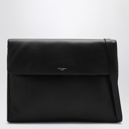 Black lambskin leather shoulder bag from dolce & gabbana featuring an adjustable and detachable shoulder strap, a front flap closure with magnetic buttons, a flat zipped pocket on the back, internal flat pockets and logo lettering on the front. size and fit - width 40 cm x height 29 cm x depth 4 cm adjustable shoulder strap length min 60 cm - max 80 cm