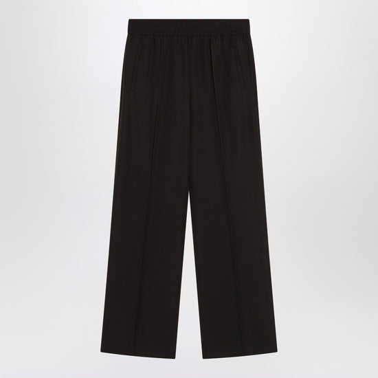 Brown ebony wool pants by dolce & gabbana, featuring an elasticized waist, two side welt pockets, and a crease at the front. size and fit - model wears size 42 it model measurements: height: 178 cm chest: 83 cm waist: 63 cm hips: 91 cm