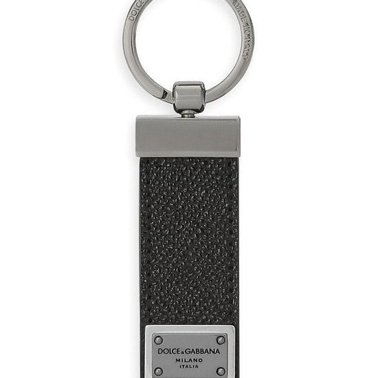 Jet black calf leather blend pebbled texture silver-tone hardware silver-tone logo plaque split-ring fastening dg logo leather key ring