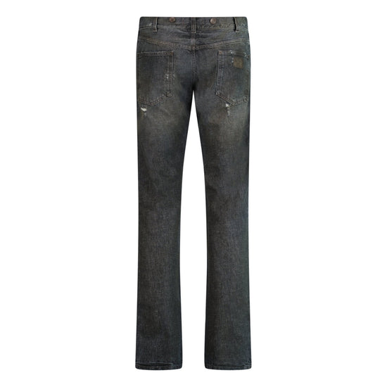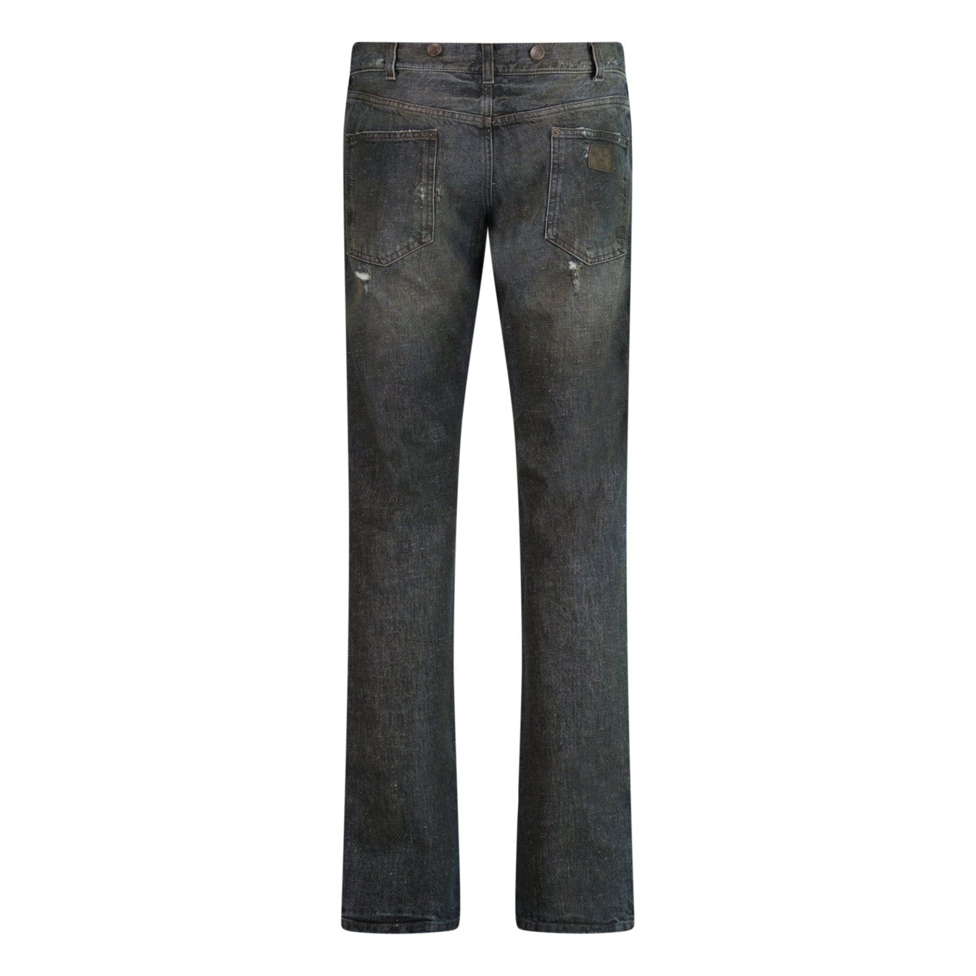 Dolce & Gabbana Leather Plaque Slim Dirt Look Grey Jeans