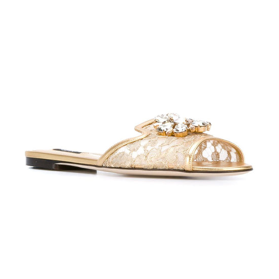 Dolce & Gabbana- Bianca crystal-embellished lace flat sandal
