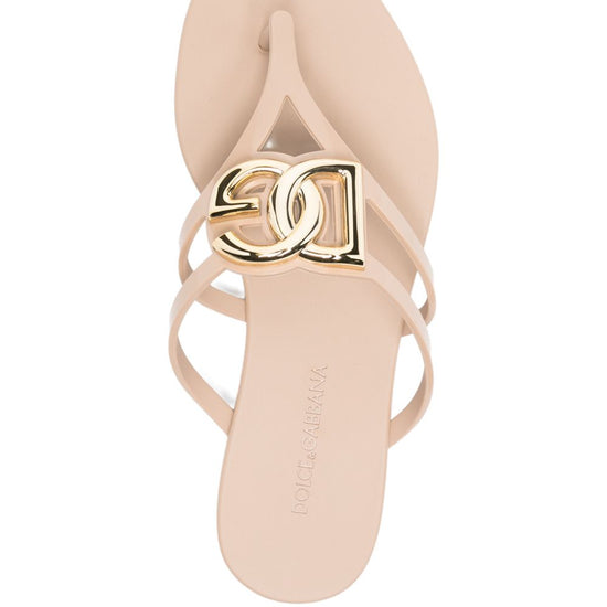 Beige thong strap logo embellishment open toe flat sole slip-on style dg logo thong sandals