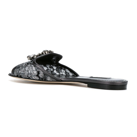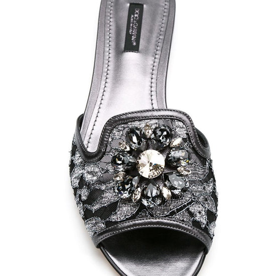 Dark silver bianca crystal-embellished lace sandals from dolce & gabbana featuring a floral lace pattern, crystal embellishments, an open toe, a branded insole and a slip-on style. rainbow flat lace sandals size and fit - heel 0,6 in / 1,5 cm