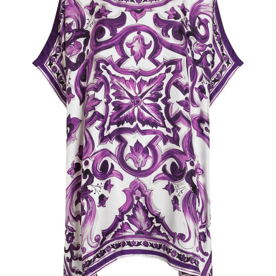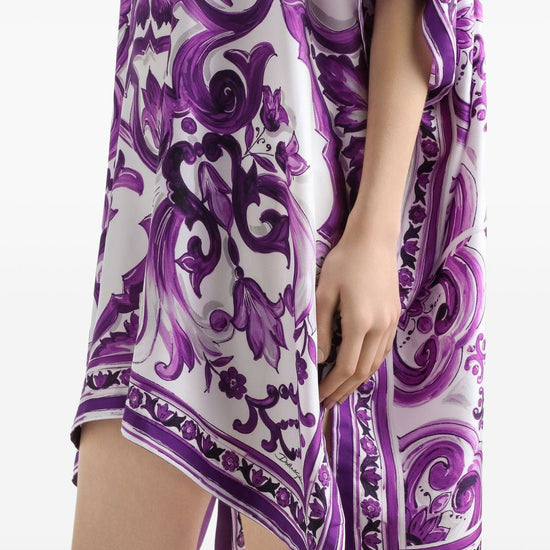 thigh-length maiolica print silk kaftan