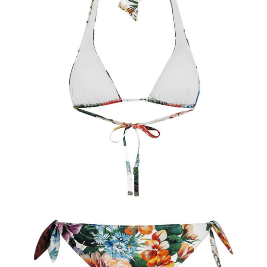be mindful to try on swimwear over your own garments. flower print bikini set