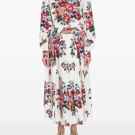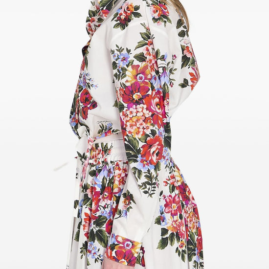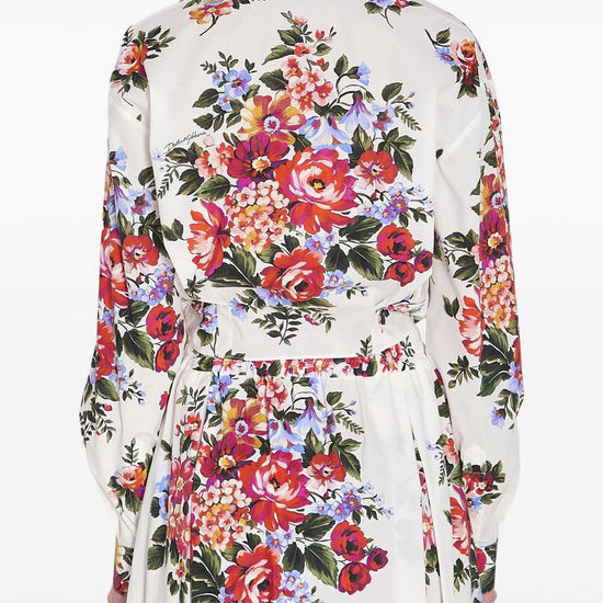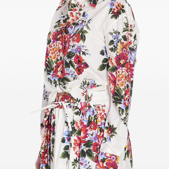 White floral print front knotted detail button fastening flower print cotton shirt