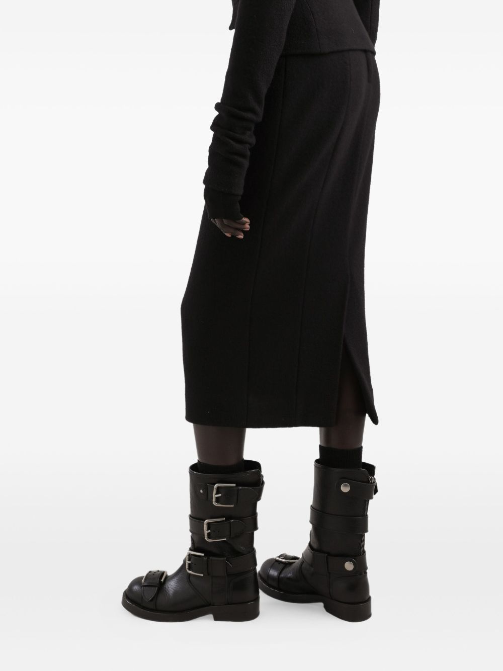 rear slit  wool pencil skirt