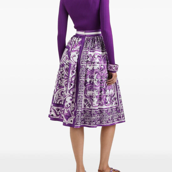 Dolce & Gabbana Gathered twill skirt with maiolica print