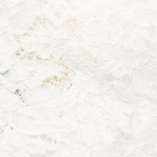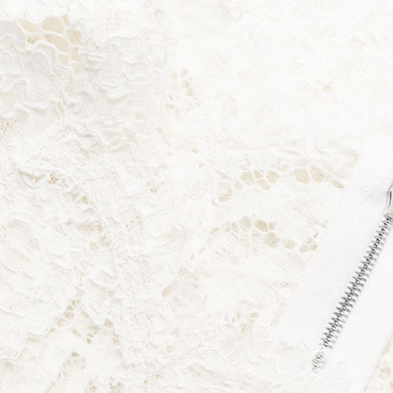 Ivory white cotton blend guipure lace round neck concealed rear zip fastening sleeveless internal slip dress above-knee length lace dress