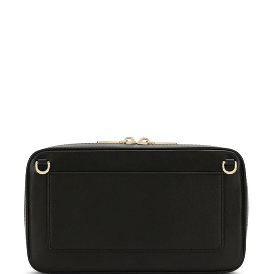 Embossed-logo cross-body bag from dolce & gabbana featuring black, calf leather, embossed logo to the front, adjustable detachable shoulder strap, top zip fastening, gold-tone hardware, main compartment, internal zip pocket and slip pocket to the rear. dg logo leather camera bag size and fit - width 7,87 in / 20 cm height 4,33 in / 11 cm depth 2,17 in / 5,5 cm