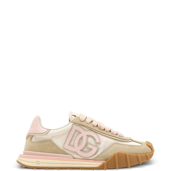 Ivory pink panelled design logo lettering round toe lace-up fastening dg athletic sneakers