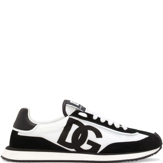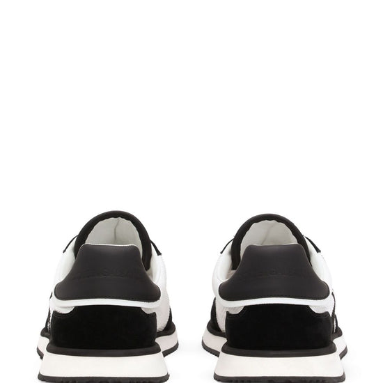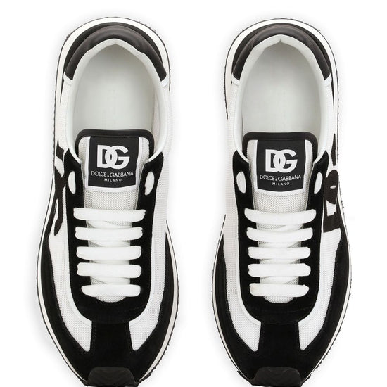 Black/white suede mesh panelling colour-block panelled design logo patch at the tongue logo print to the side branded insole flat rubber sole this piece comes complete with a protective dust bag. dg cushion sneakers size and fit - heel 1 cm