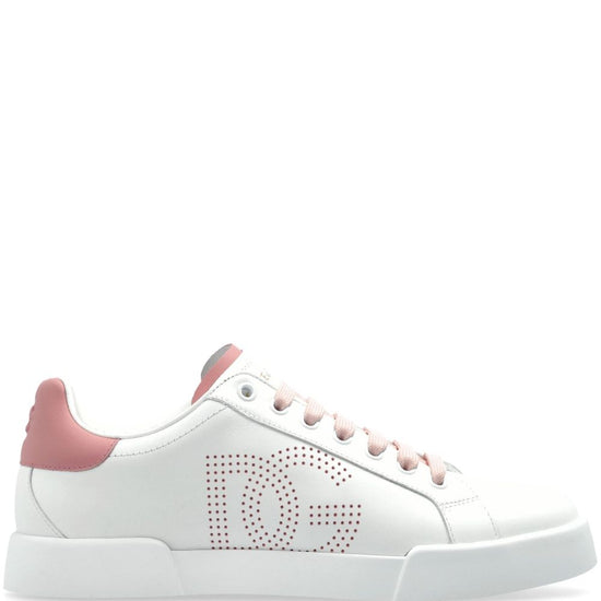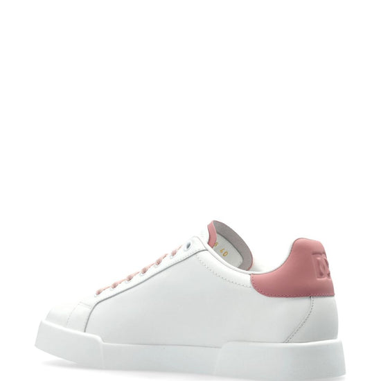 White front lace-up fastening rubber sole contrasting branded heel counter perforated logo detail portofino leather sneakers size and fit - heel 1,2 in / 3 cm; platform 0,8 in / 2 cm