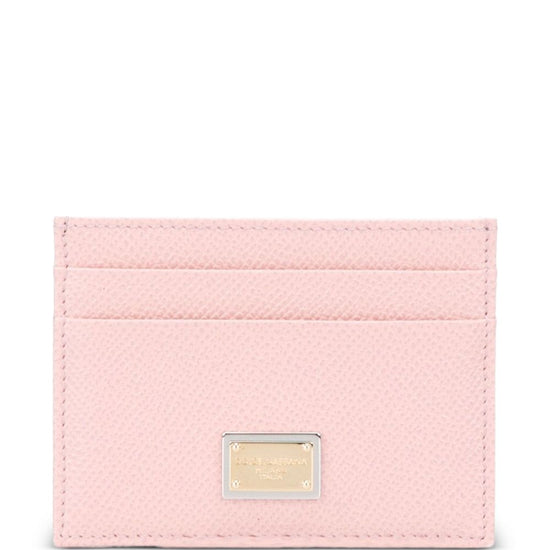 Dolce & gabbana’s luxe leather accessories are timeless classics that are a hallmark of the italian fashion house’s artisanship and meticulous detail. pink calf leather 'dauphine' cardholder from dolce & gabbana featuring a textured leather detail, a gold-tone logo plaque, multiple card slots and an open top design. leather credit card case size and fit - width: 7.0 centimetres. length: 10.0 centimetres.