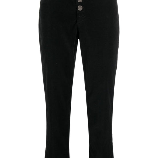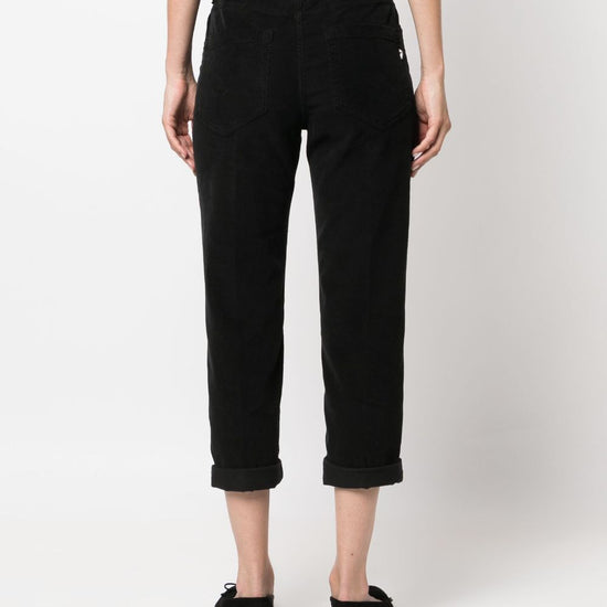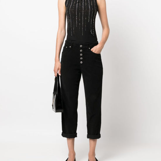 Koons button-fly cropped trousers from dondup featuring black, cotton blend, logo patch to the rear, mid-rise, belt loops, button fly fastening, straight leg, classic five pockets, turn-up cuffs and mid-calf length. crop, a quadri koons loose fit jeans size and fit - this piece fits true to size. we recommend you get your regular size. model is 1,75m / 5ft 8in wearing size 27 (waist cm)