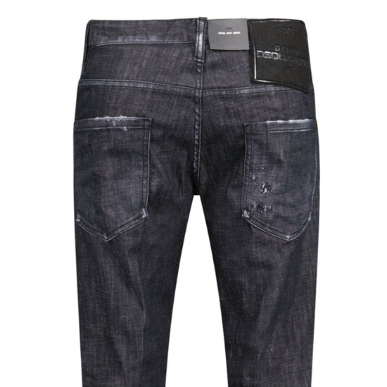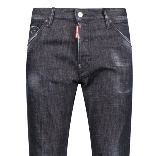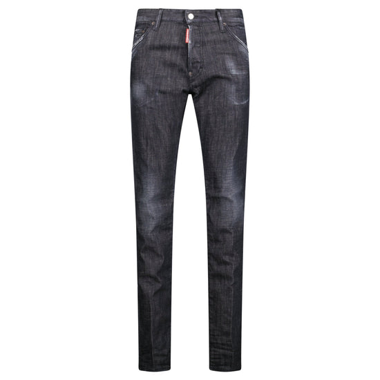 elevate your denim collection with the dsquared2 slim-cut 'cool guy' jeans. crafted from stretch-cotton, these black washed denim jeans offer a slim, tapered fit, blending comfort and style with a rugged edge. featuring a distressed finish for a contemporary look, these jeans capture dsquared2's signature design ethos. the mid-rise design is complemented by a concealed fly and button fastening, offering a sleek silhouette. finished with the classic five-pocket construction and belt loops, these jeans are as functional as they are stylish. a felt logo patch on the rear belt loop adds a subtle nod to the brand’s attention to detail.