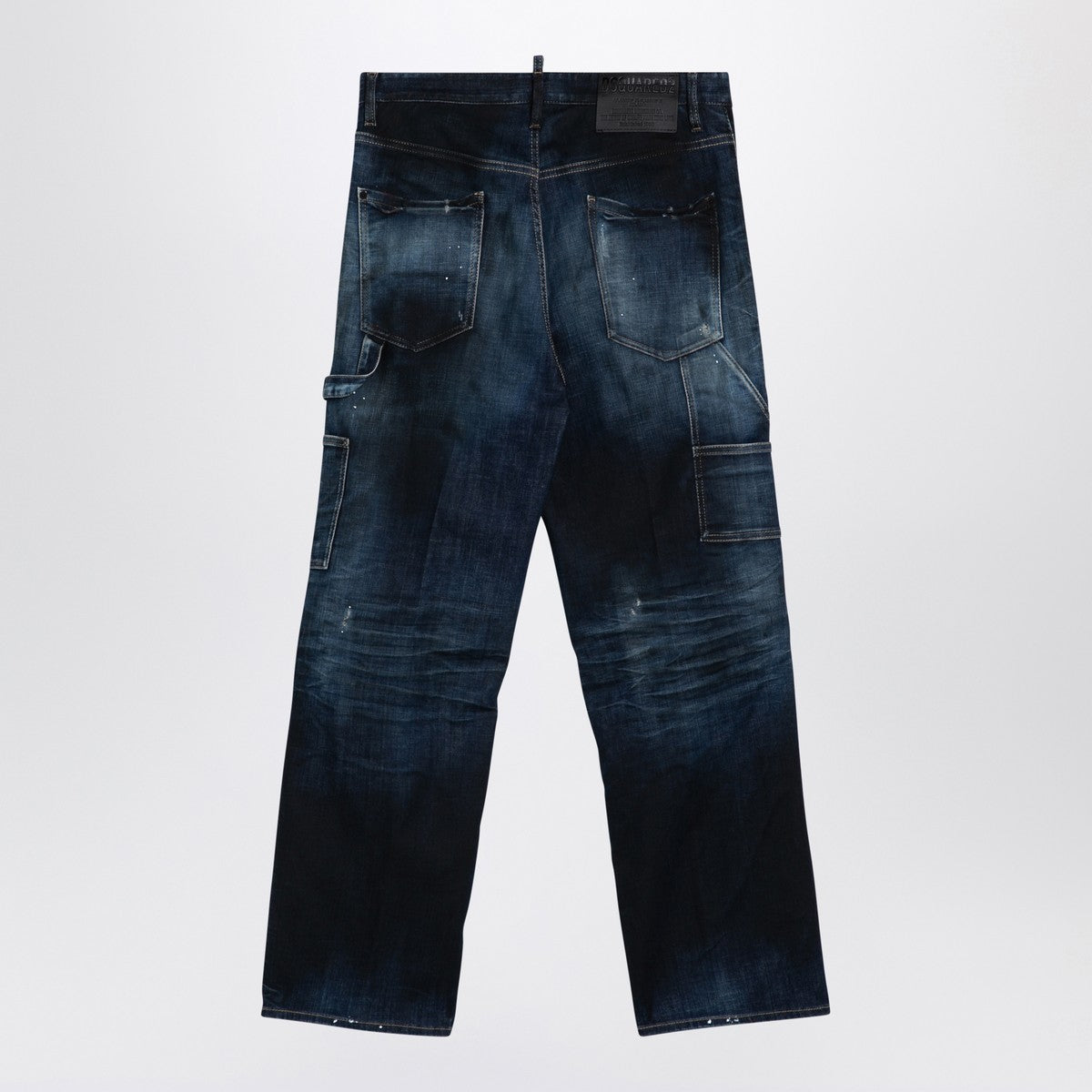 Washed-out blue cotton denim jeans from dsquared2 featuring a front zip and button fastening, belt loops, front panels, five classic pockets, a rear logo patch, localised wear and tear and a front logo plaque. size and fit - model wears size 48 it model measurements: height: 187 cm chest: 102 cm waist: 76 cm hips: 92 cm