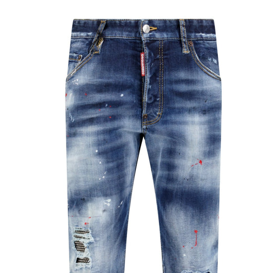 DSquared2 'Skater' Leather Logo Jeans Blue