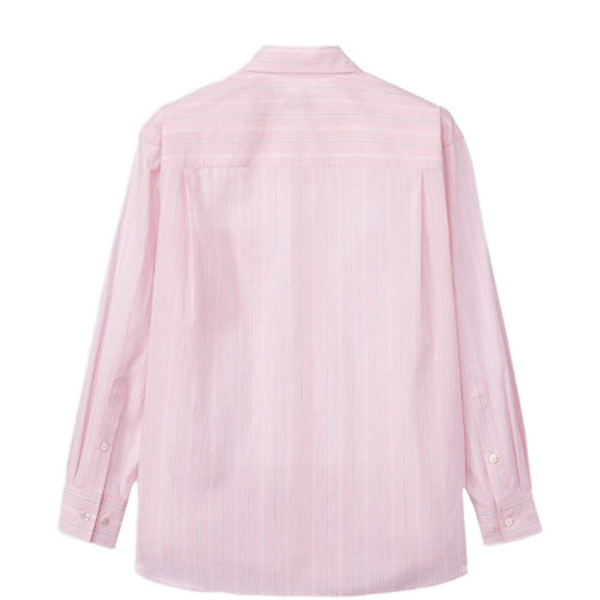 Soft pink stripe pattern chest pocket long sleeves button fastening striped cotton shirt