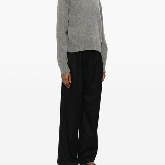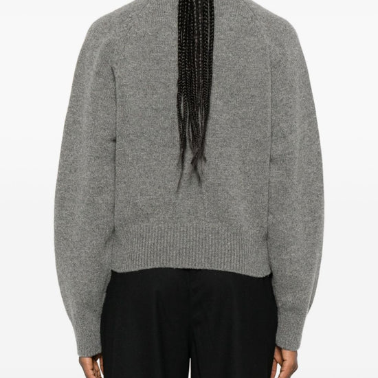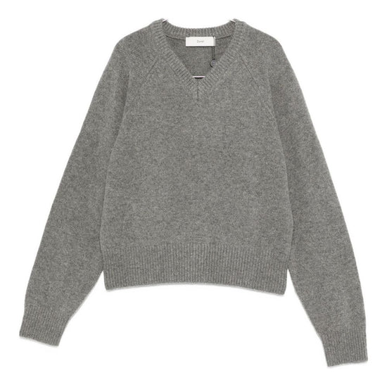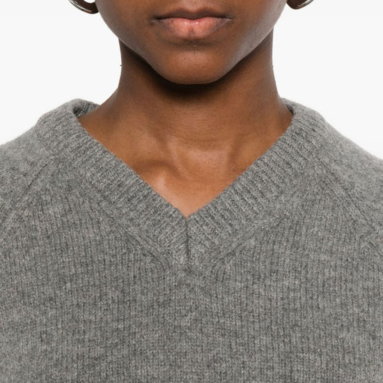 Grey wool v-neck raglan sleeves wool v-necked sweater