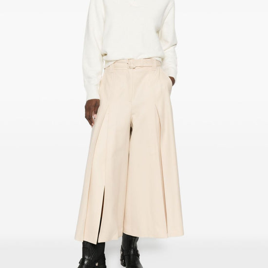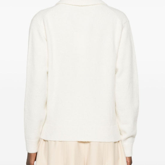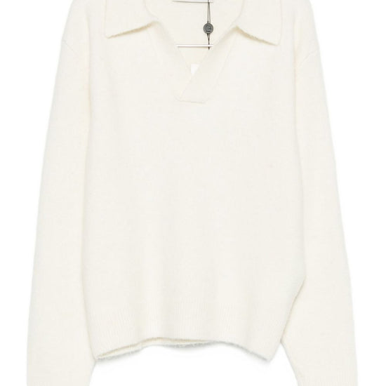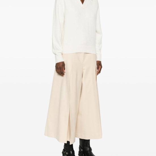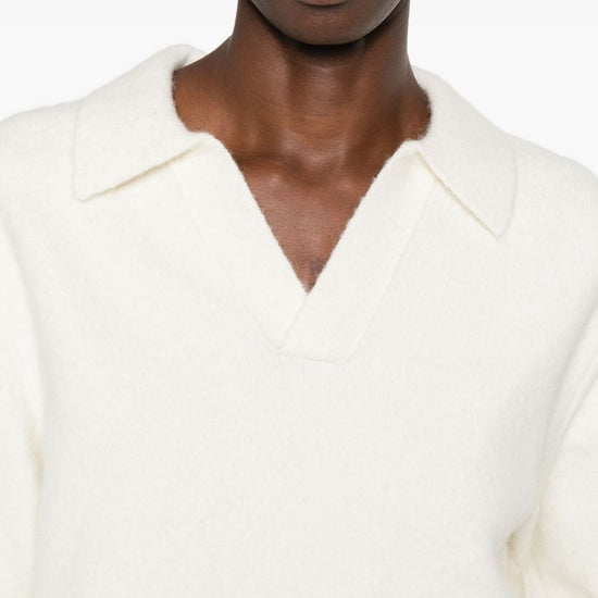 Light beige polo collar v-neck long sleeves knitted construction wool blend polo sweater
