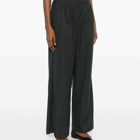 Charcoal grey concealed front fastening belt loops pleated details front diagonal pockets