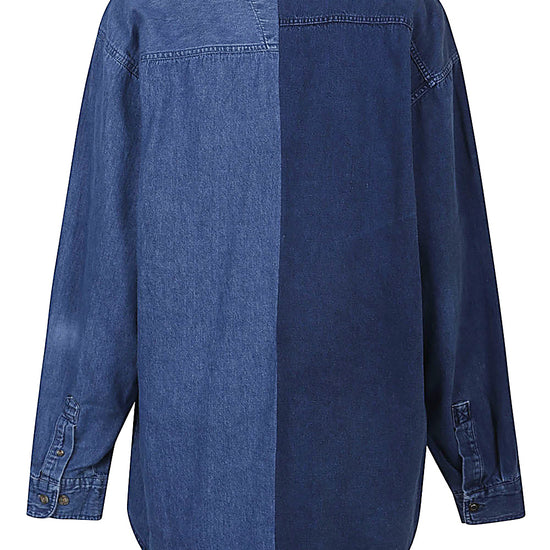 Denim-toned shirt, pointed collar, patch pocket on the chest. the piece has a unique appearance, each item shows differences and different details. m/l denim cotton shirt size and fit - this piece fits true to size. we recommend you get your regular size. model is 1,75m / 5ft 8in wearing size s.