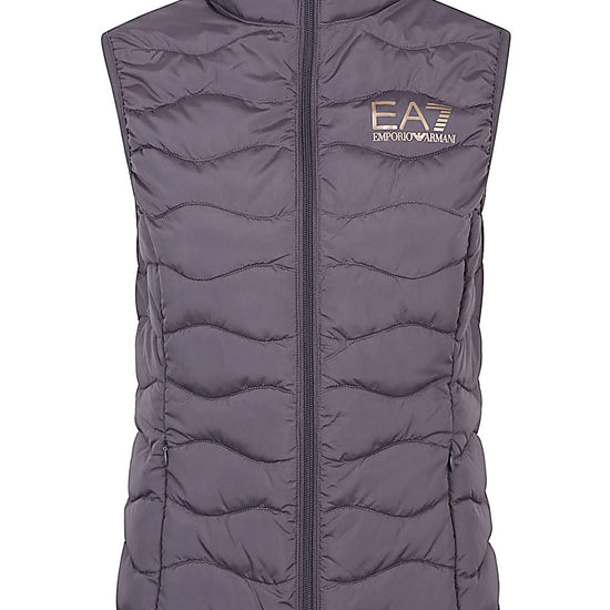 Eco-down padding, water-repellent and windproof fabric, quilted model with wave effect, zip closure, two side welt pockets, contrasting ea7 logo on the chest, resealable model with dust bag. logo down vest size and fit - this piece fits true to size. we recommend you get your regular size. model is 1,75m / 5ft 8in wearing size s