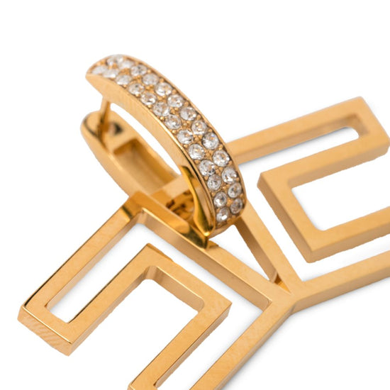 Gold crystal embellishment geometric design drop style these earrings come as a pair. normal everyday use and external agents may reduce the lustre of gemstones and gold surfaces. to maintain, use specific, non-abrasive products specially meant for cleaning jewellery. earrings