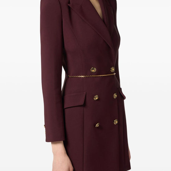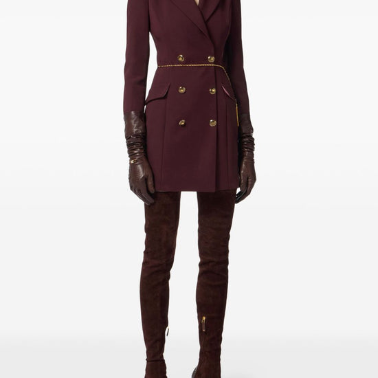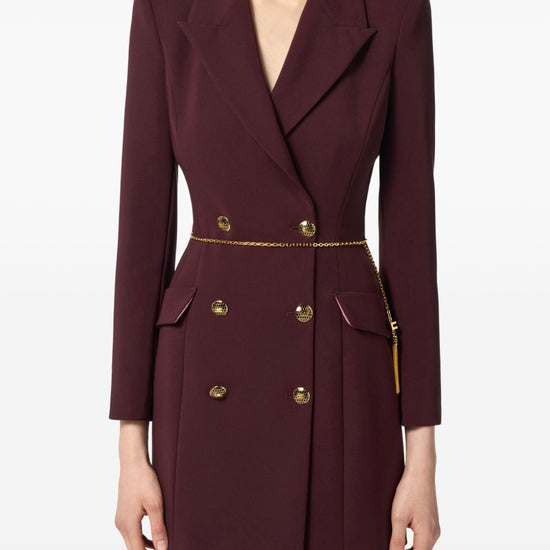 Merlot crêpe fabric double-breasted closure chain belt double-breasted short dress