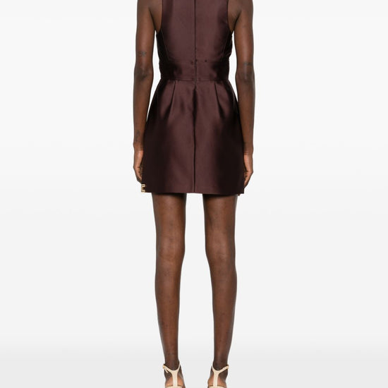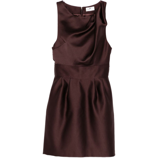 Brown draped detail zip fastening sleeveless sleeveless short dress