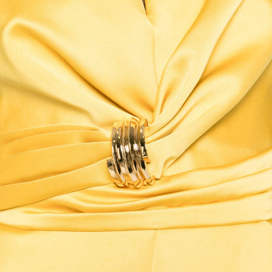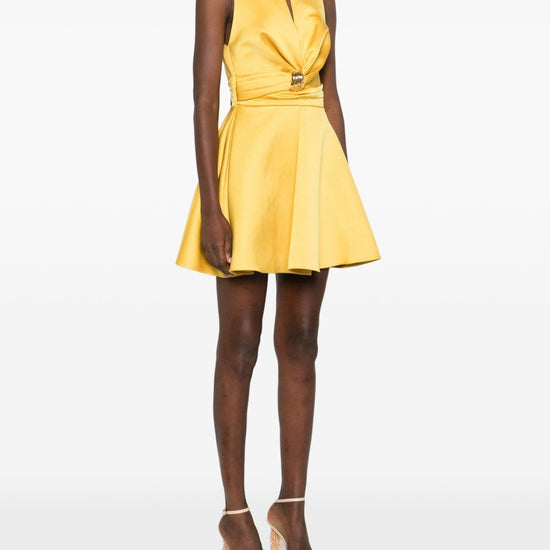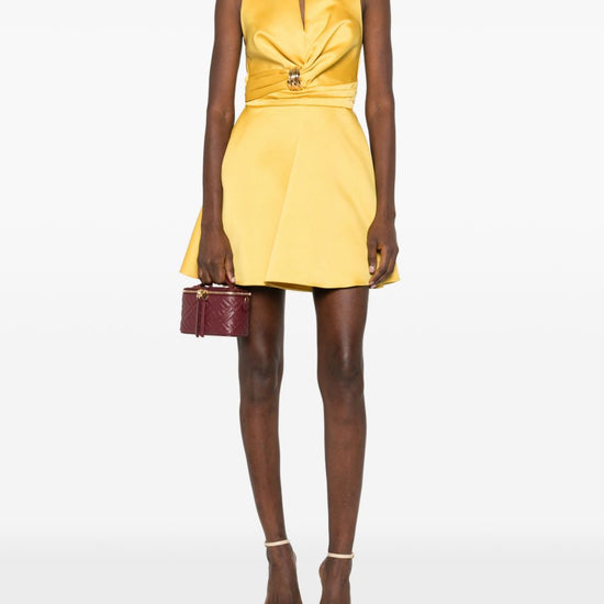 Bright yellow gathered detail sleeveless tonal stitching sleeveless short dress