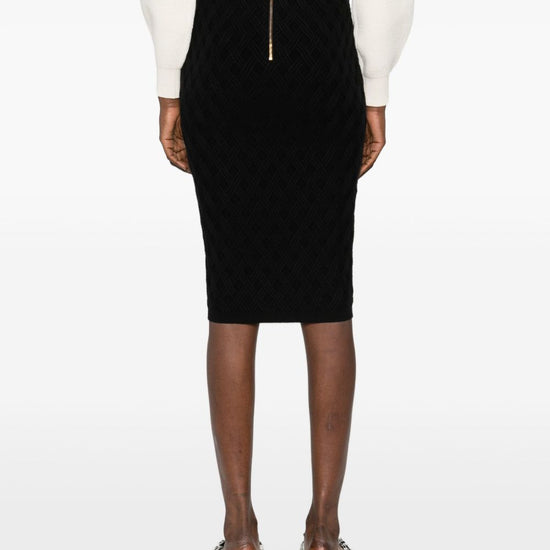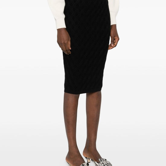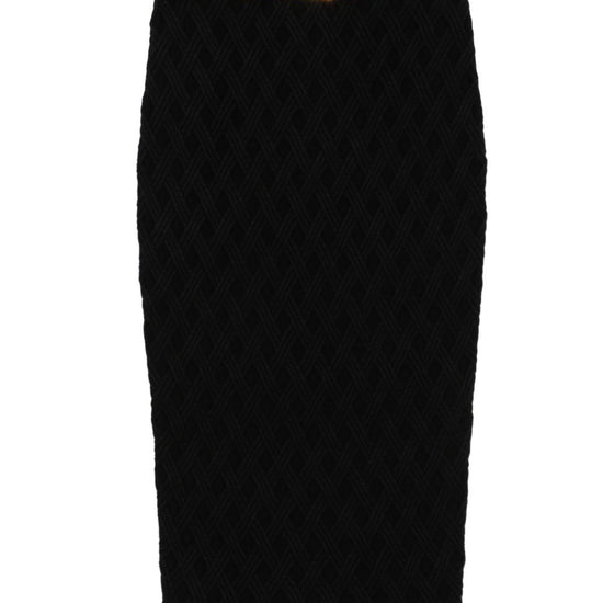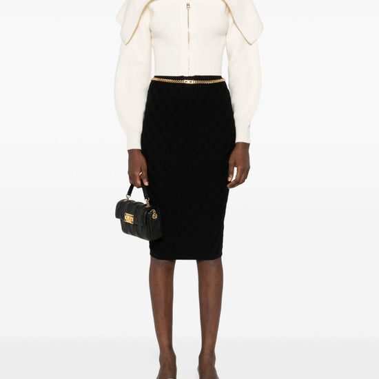 Black geometric pattern chain belt close-fitting ribbed texture midi length knitted midi skirt