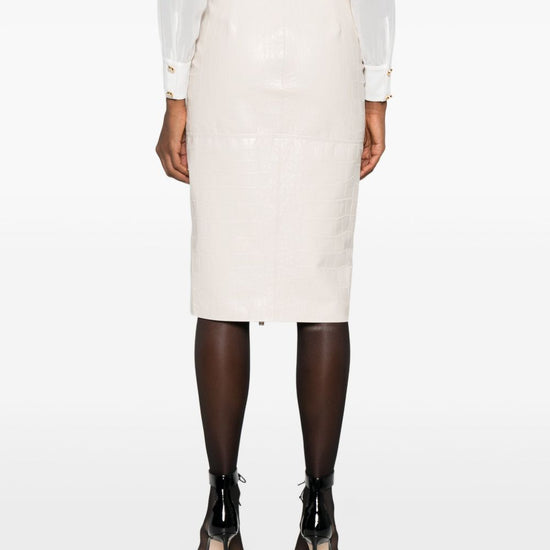 Off-white crocodile effect zip fly straight hem pencil shape mid-length midi skirt