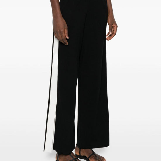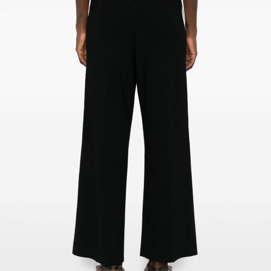 Black logo waistband side stripe lateral pockets wide leg knitted fabric tricot trousers