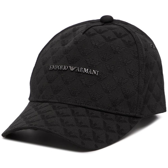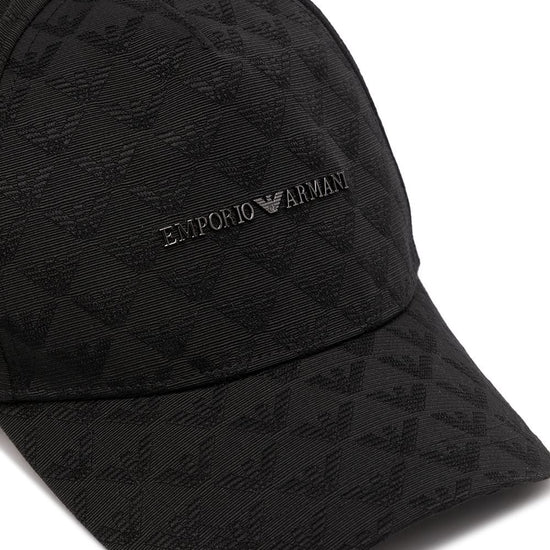 Black all-over logo print logo plaque curved peak allover logo baseball cap