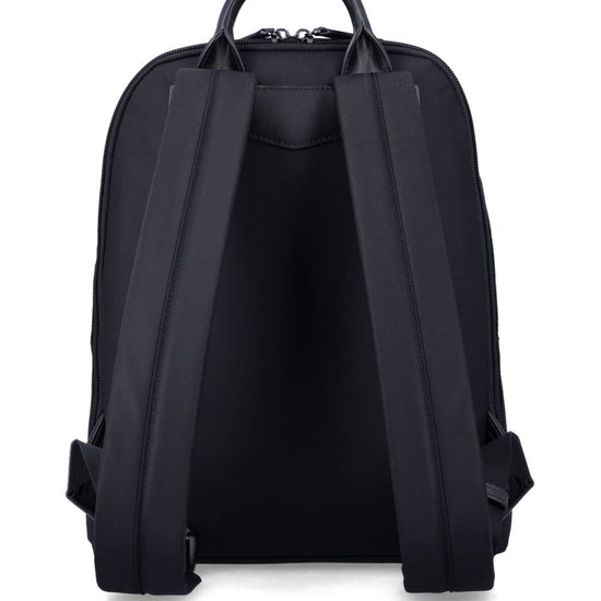 Black all-around zip fastening front zip fastening logo plaque two adjustable shoulder straps logo nylon backpack size and fit - width 25.5 cm, height 33 cm, depth 11.5 cm, handle 10 cm, shoulder strap 70 cm.