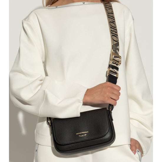 Black logo-print strap gold-tone logo lettering adjustable shoulder strap gold-tone hardware magnetic fastening crossbody mini bag size and fit - width 19.5 cm height 12.5 cm depth 4.5 cm shoulder strap 100 cm.