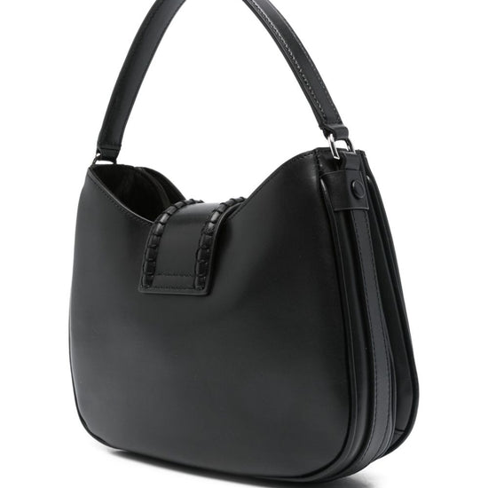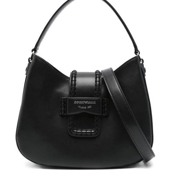 logo plaque small leather shoulder bag size and fit - depth: 7.0 centimetres. height: 15.0 centimetres. width: 23.0 centimetres. handle: 14.0 centimetres.