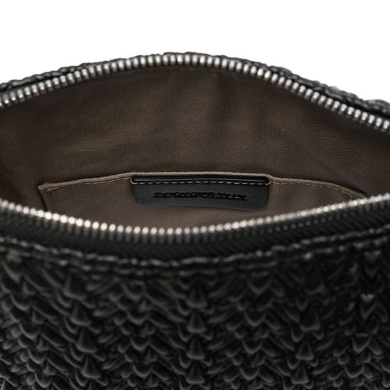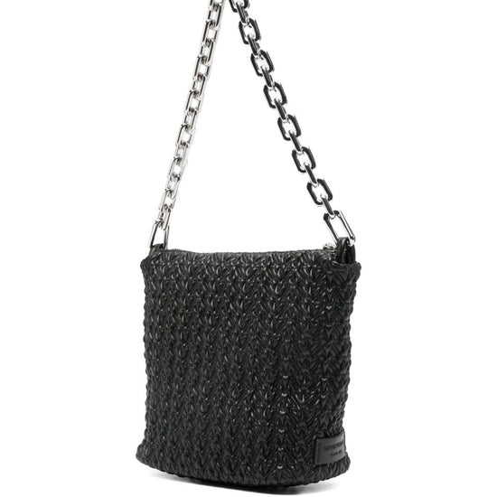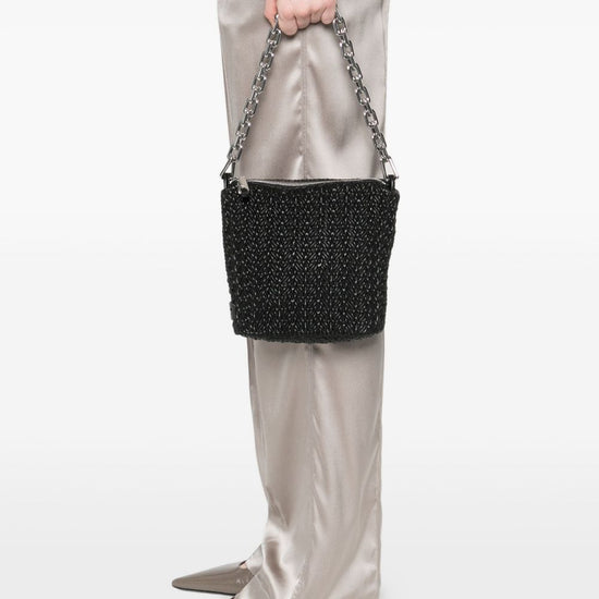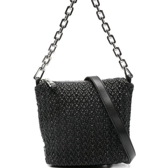 Black woven texture chain strap zip fastening detachable shoulder strap silver-tone hardware small hobo bag