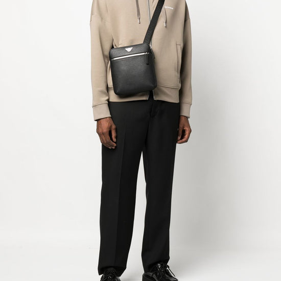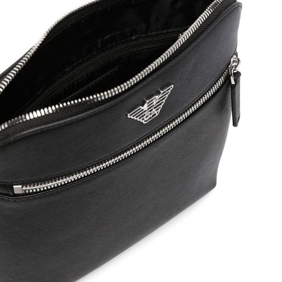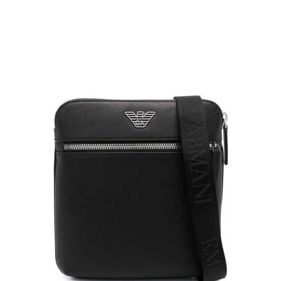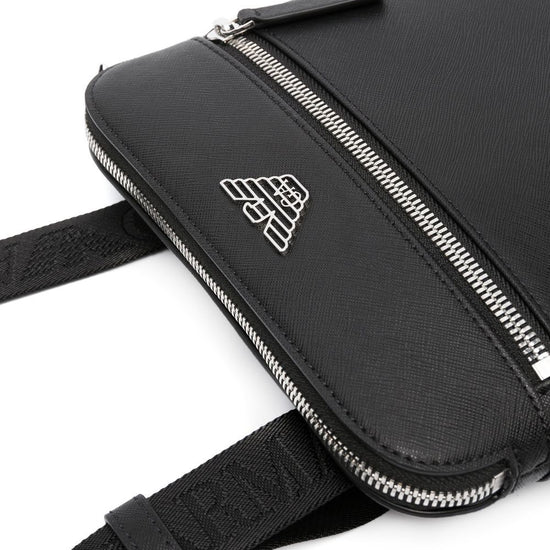 Emporio Armani Flat shoulder bag in regenerated saffiano leather with ASV eagle plaque