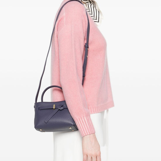 Dark blue top handle knotted strap detail gold-tone clasp internal zip-fastening pocket small handbag