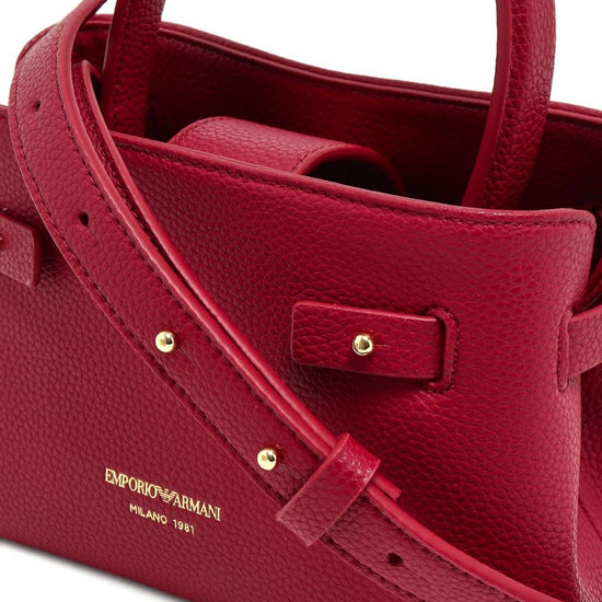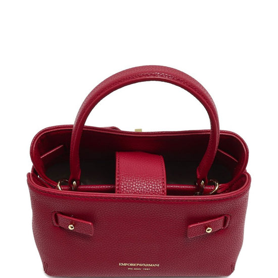 Red pebble texture top handle detachable shoulder strap gold-tone buckle knotted strap detail small handbag