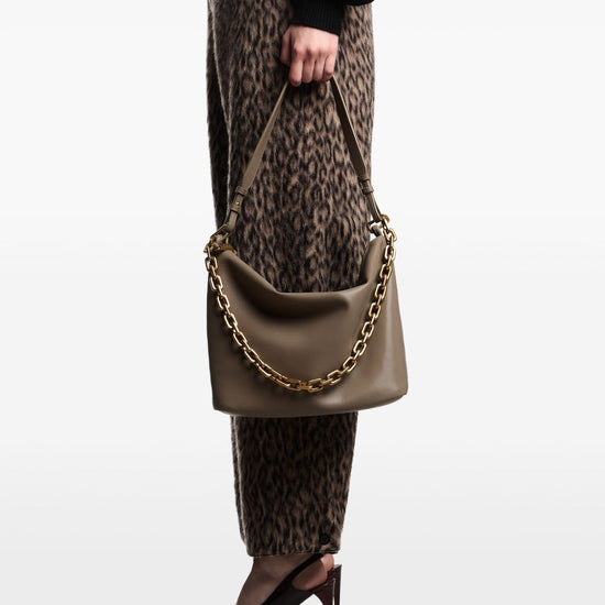 top handle leather medium hobo bag size and fit - depth 15 cm. height 25 cm. width 30 cm.