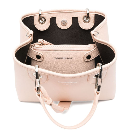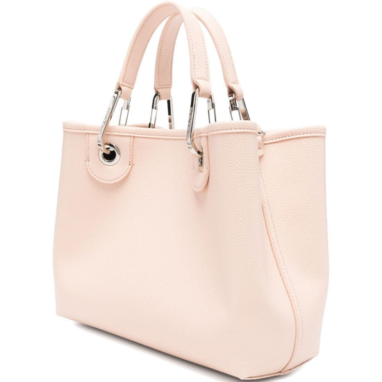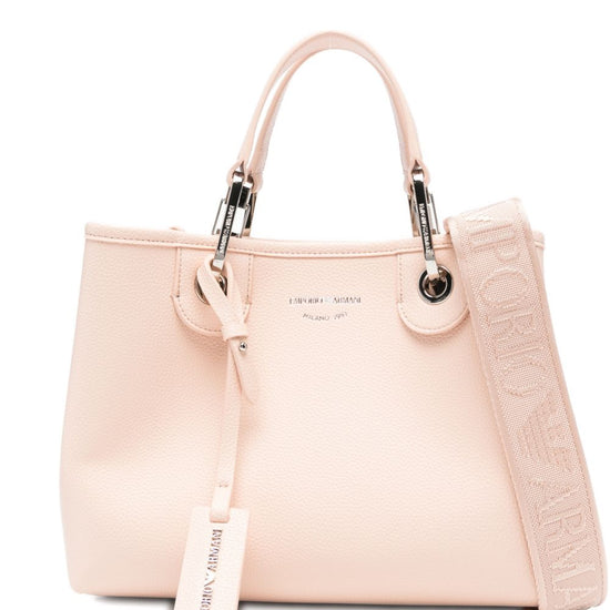 Light pink top handles detachable shoulder strap logo print silver-tone hardware this piece comes complete with a protective dust bag. myea small shopping bag